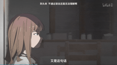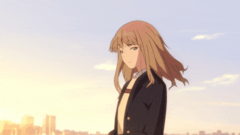 南夢芽解開了一直解不開的智慧環,興奮地轉身想告訴她的姐姐,在現實世界裏已經去世的南香乃,但突如其來的是南香乃對着鏡頭安靜地微笑的定格[Gif 5],適才還不斷流淌着雲與風的世界就在此時此刻停滯,誰都會驚歎於這個鏡頭令人屏息的美麗吧。原來這個世界並不現實,幻象在那一瞬間自動地從運動墮入靜止,它自我暴露,自我解體,連虛幻但幸福的交流,在剎那間也不再成為可能。切斷一切運動關係的靜止讓瞬間通達永恆的斷絕,明明鏡頭離她那麼近,卻橫生出絕對無法跨越的溝壑。“無時間性”開示出空間不可視的斷層。**這個鏡頭就是這麼地令人意外,卻又非此不可地適切。**五十嵐海是能設計出這樣的瞬間的演出家。