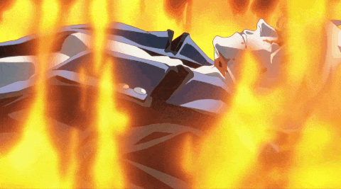 另一方面,第十話的中間部分斬子射擊蜘蛛怪物時,一連的靜止畫的使用飽受爭議。當然,要求現今的觀眾領會像高橋直人的傑作**《誘惑 COUNT DOWN》第 2 期《鏡》(1997)那樣把賽璐珞的線都凝固、把動畫的非連續性極端地定着下來的姿態①,似乎強人所難,可是,只是把運動理解成“流暢的動作”,一味地要求這種流動性,無視將變未變的不動性激烈地內藴的動態,只會讓動畫表現的幅度變得越來越狹窄。事實上,伴隨斬子的長台詞,五十嵐海迴避使用弛緩的慢動作,而是犀利地捕捉轉瞬[Gif 9],並且絲毫不讓我們感到黏着**。**倘若只是追求凡庸的流動性,強烈的構圖與筆觸不會像現在這樣烙印在我們的眼球中。**而且,正如這場戲所展示的,五十嵐海動畫所謂的畫風,一定會根據場景的需要發生出乎意料但適切的變化。