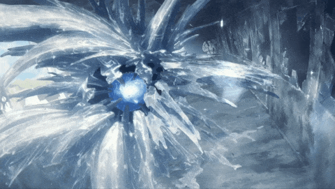 另一方面,第十話的中間部分斬子射擊蜘蛛怪物時,一連的靜止畫的使用飽受爭議。當然,要求現今的觀眾領會像高橋直人的傑作**《誘惑 COUNT DOWN》第 2 期《鏡》(1997)那樣把賽璐珞的線都凝固、把動畫的非連續性極端地定着下來的姿態①,似乎強人所難,可是,只是把運動理解成“流暢的動作”,一味地要求這種流動性,無視將變未變的不動性激烈地內藴的動態,只會讓動畫表現的幅度變得越來越狹窄。事實上,伴隨斬子的長台詞,五十嵐海迴避使用弛緩的慢動作,而是犀利地捕捉轉瞬[Gif 9],並且絲毫不讓我們感到黏着**。**倘若只是追求凡庸的流動性,強烈的構圖與筆觸不會像現在這樣烙印在我們的眼球中。**而且,正如這場戲所展示的,五十嵐海動畫所謂的畫風,一定會根據場景的需要發生出乎意料但適切的變化。