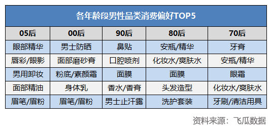 現代男性也開始有了“容貌焦慮”,對護膚、美妝、甚至醫美的接受度大幅提升。越來越多男性加入“美顏大軍”。從年齡來看,主要消費羣體來自80後羣體,佔比超過40%,與此同時,05後和70後 男性的消費規模也明顯提升,其中,05後羣體對彩妝產品表現出強烈的消費意願,而70後羣體則偏向購買精華、眼霜等面部護理產品。每個年齡段的男性消費需求都有差別。此外,女性消費者也是男士美妝個護行業中重要角色。主要以送禮需求為主,偏向購買洗面奶、爽膚水等基礎單品構成的套裝商品。消費者的多元細分需求無疑為化妝品品牌提供了新出路。