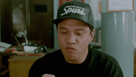 面對兄弟反水,槍頂臉上,第一反應不是害怕,而是“哎哎哎”地發出感嘆,好像下一句就得説“不然你往旁邊稍一稍呢”。