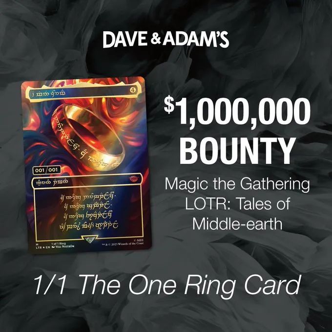 在卡牌尚未正式發售的6月初,美國一家擁有30年曆史的牌店Dave & Adam’s就放出消息,不管是誰開到了“至尊戒”,都願意以100萬美元的價格收購: