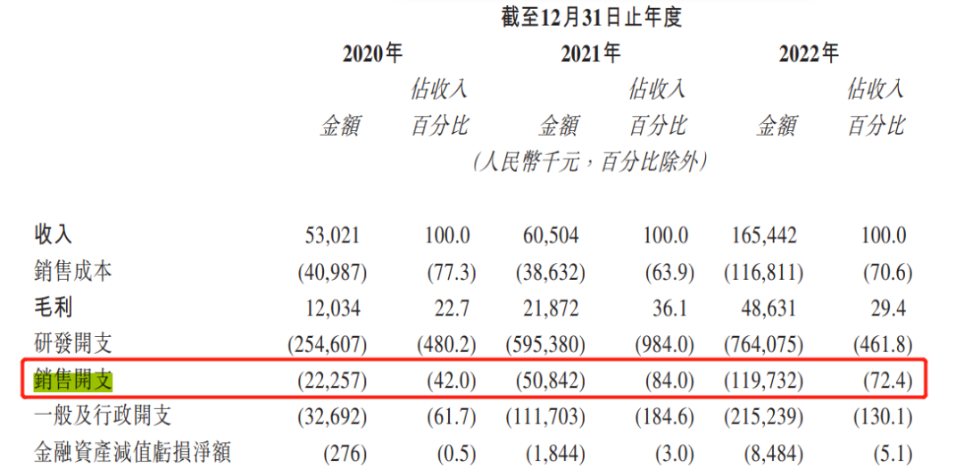 或許正是為了搶奪這最後的一年半窗口期,黑芝麻智能明顯加快了銷售端的投入。招股書顯示,2020-2022年,企業銷售開支分別為2225.7萬元、5084.2萬元、1.20億元。
