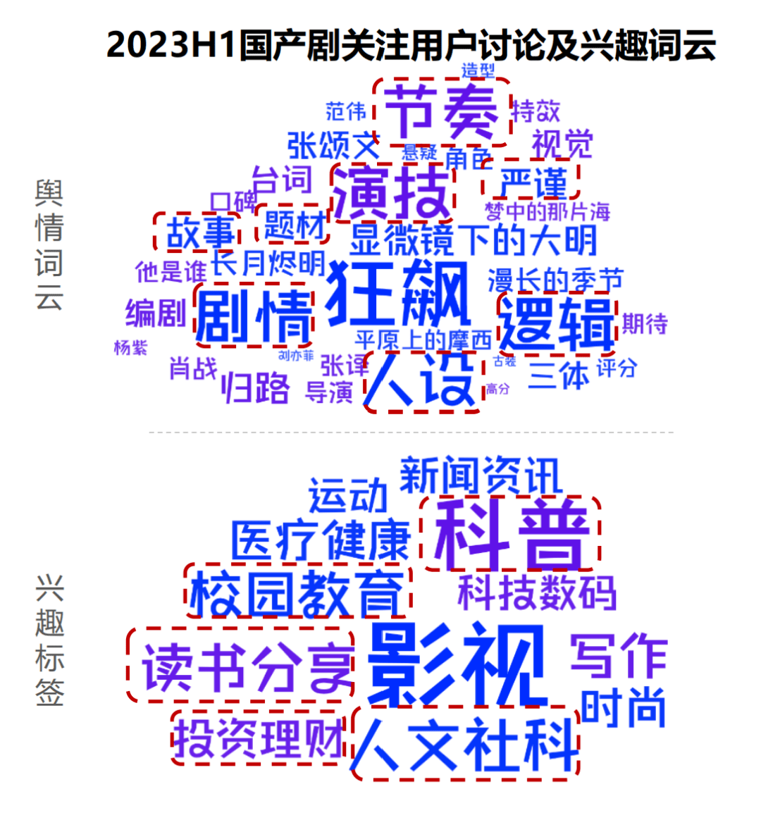 第三是深。好的劇集影響力全面加深。引發觀看熱度的同時,也能引發用户思考以及更深層次的文化滲透。從這份報告中還可以看到,當下的國劇觀眾更關注劇集邏輯、節奏,而這些Z世代用户除了關注影視外,興趣標籤還包括人文社科、投資理財等。