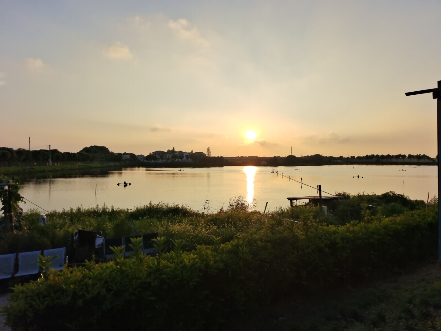 今天的確是難得的騎行好天氣,儘管有點悶熱,天氣預報還説可能有雷陣雨,我再三看了青浦的天氣預報確定不下雨,就抓緊時間出發了,當然雨披還是必備的,還帶了兩個充電寶,就擔心一個不夠用。下午2:30出發,地鐵到朱家角站已經4:34了,想不到青浦還是太陽普照,不得不戴上防曬面罩和袖套,騎行沒幾米突然想起來還沒有熱身,座墊也不舒服,趕緊下車簡單熱身和調整好座位高度,也是為了這次長途騎行儘量做好準備吧!