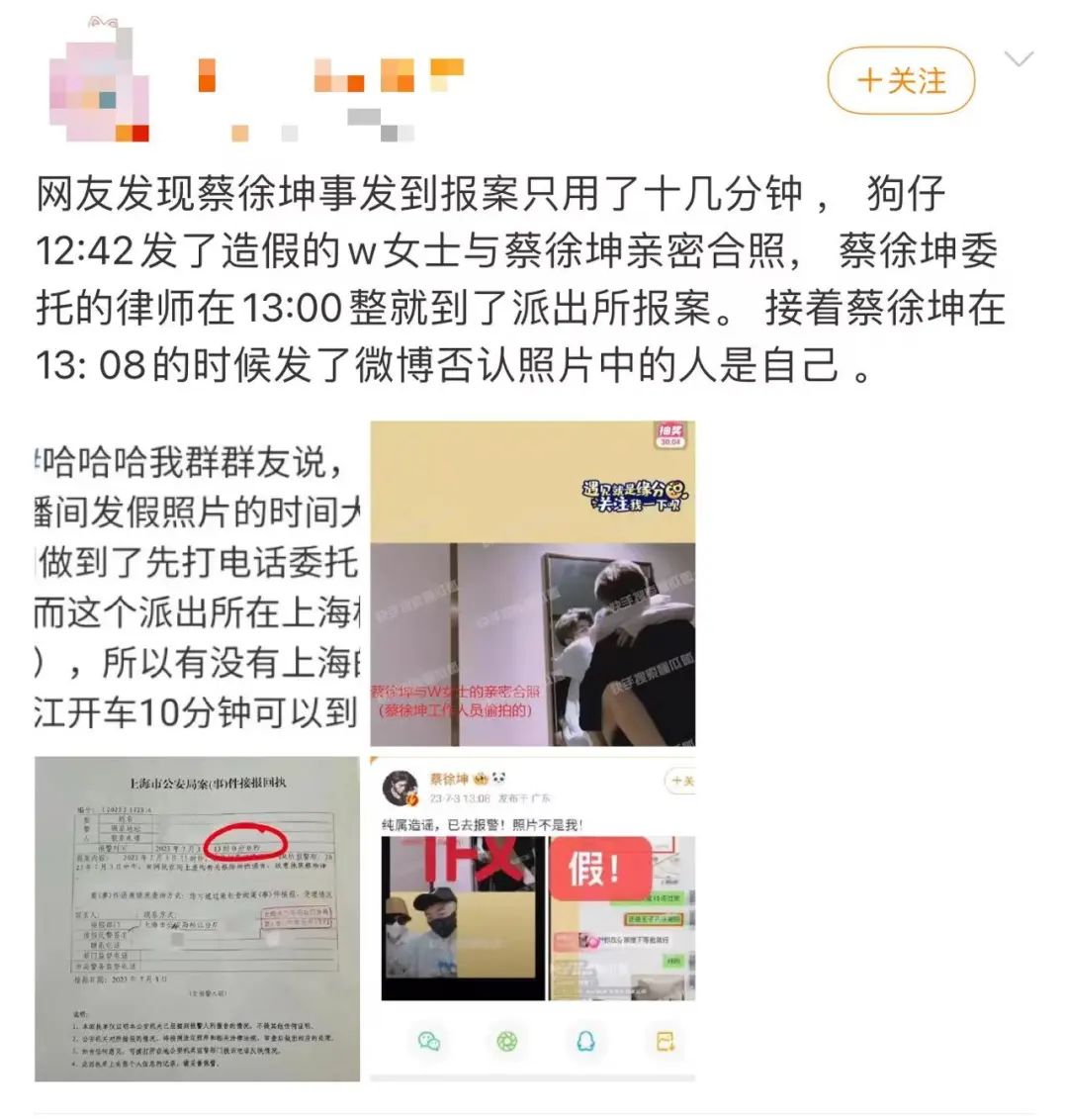 一小時後,狗仔又曬出了新的爆料,這一次,蔡徐坤“光速”回應,並報警曬出了回執單。