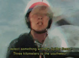 比如昭和時代漫威授權東映製作的特攝版《蜘蛛俠》裏,蜘蛛俠不僅能像奧特曼一樣變身,一到了巨大戰時必有機器人出現。蜘蛛俠在電影裏的蜜汁帥氣,更在國內動漫愛好者中形成了名梗“四百大媽”。