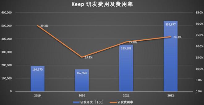 需要注意的是,2021年,Keep的營銷費用同比增速高達217%,這短視頻平台線上健身、“劉畊宏”等競對的快速崛起對Keep造成競爭壓力有關,在用户流量的爭奪上,Keep投入了大量的資金,而這部分營銷開支的大幅增長,也直接導致了2021年的鉅額的虧損。到了2022年,相比2021年,Keep明顯壓縮了營銷方面,這也幫助公司實現了虧損的大幅收窄。