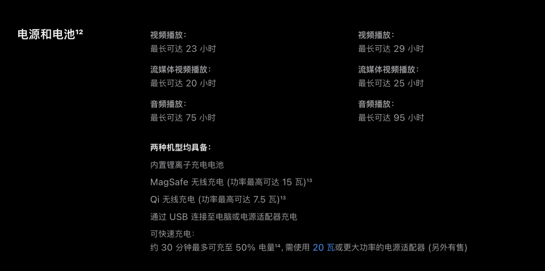 而蘋果則不會透露手機電池的具體規格,他們只會跟你説 “ 我們的新 iPhone 續航比前代提升了多少小時,可以播放多少小時的視頻或者音頻。 ”