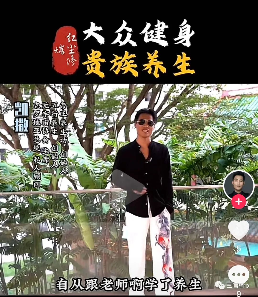 身為成功學四大天王的聶梟這次不再講授成功學,脱胎換骨改名凱撒,成為“帝王養生功創始人、五行養生創始人”,甚至還是“元宇宙協會主席”****、“克羅地亞總統私人顧問”。