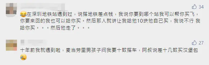 有位網友在屯門也遭遇路人上來借錢,不過他比較機智,上來搭訕的人剛一開口説要借錢,網友馬上大聲喊:“是不是要錢啊?你要多少錢?你不説我怎麼知道你要多少呢!”