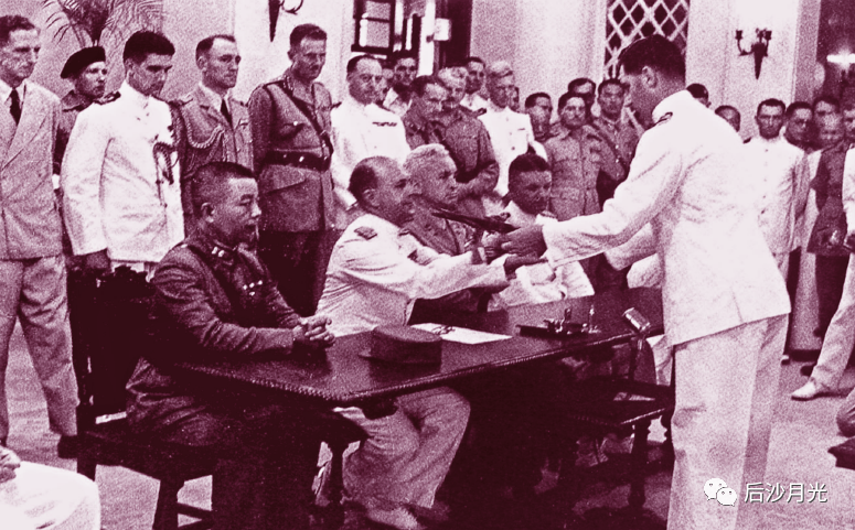 9月16日,英軍海軍少將哈克特(夏愨)在香港受降,他在現場根本不提**“我榮幸地接受蔣委員長委託”**這句話,而中國代表潘華國將軍則被英國人搞得跟旁觀者一樣。