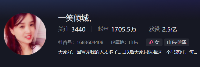 和950萬粉絲的秀才相比,1700萬粉絲的一笑傾城紅得更加低調,粉絲轉化率也更高。