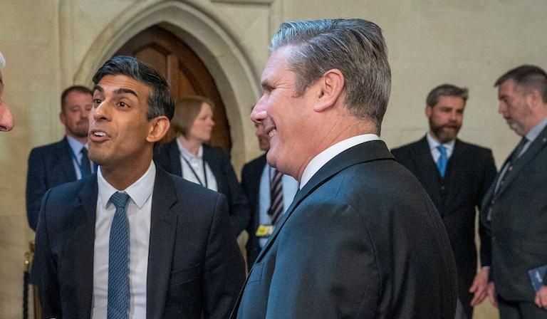 現任英國首相里希·蘇納克(左)與工黨領袖基爾·斯塔默。圖源: Associated Press / Alamy Stock Photo