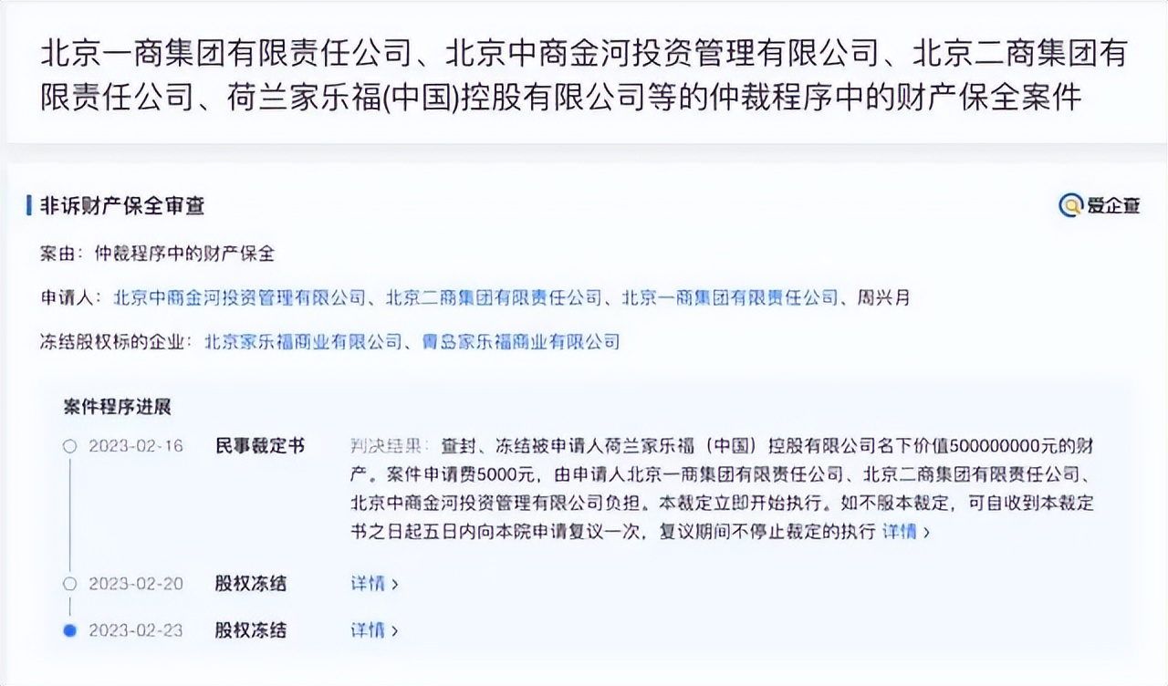 天眼查可見,這一次讓家樂福中國公司成為老賴的218萬元執行款只是冰山一角,目前家樂福中國公司涉及的訴訟案件已經達到45起。今年6月,北京一商和二商集團等公司曾向北京二院申請財產保全,凍結了家樂福中國公司5億元的財產。
