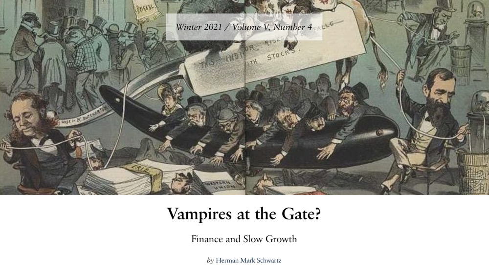 本文為文化縱橫新媒體原創編譯“世界權力的迭代與重組”系列之十,原載《American Affairs》2021年第4期,原題為《門口的吸血鬼?金融擴張與經濟放緩》(Vampires at the Gate? Finance and Slow Growth)。由於作者立場、議題設置等原因,本文近反映局部信息,僅代表作者本人觀點,供諸君參考。