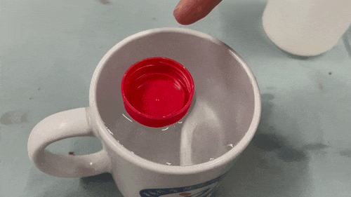 再將乒乓球換成了瓶蓋,同樣可以觀察到相同的現象。