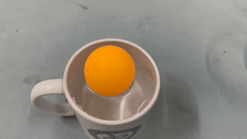 回到這次的實驗,表面張力是如何起作用的呢?首先對於所標杯中水沒有滿的時候,由於水浸潤杯子表面,表面張力使接觸邊緣的水位液麪會上升,杯中液麪可以看做是下凹的。那麼當乒乓球放到杯子裏後,整體會受到朝向杯子邊緣的力從而表現出第二步中的行為。