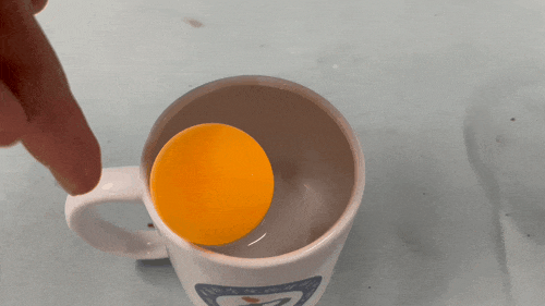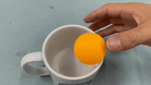 可以發現乒乓球會慢慢地移動到杯子的邊緣,好像有一種**“神秘力量”**將乒乓球拖到杯子邊緣。