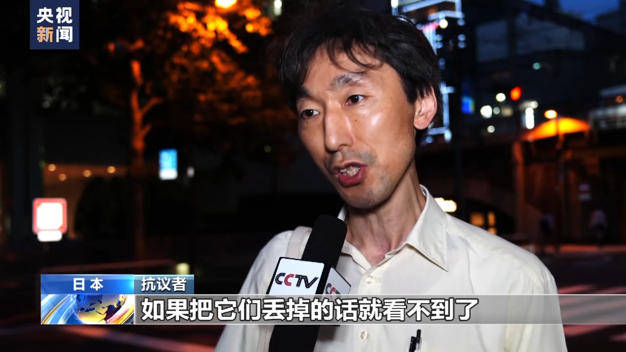 抗議者:核污染水的儲存罐放在那裏,核事故的危害就能夠看得見,如果把它們丟掉的話就看不到了。通過把核污染水排放入海,將福島核事故能夠看到的痕跡消滅掉,這就是加害者的做法。