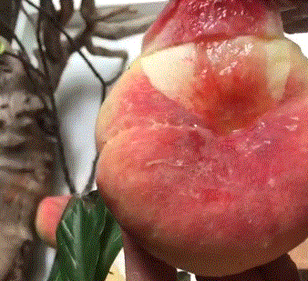 最好吃的蟠桃一定是樹上自然成熟的,經過了充分的光合作用後成熟的蟠桃外表呈粉紅色,將表皮輕輕剝下就能食用,肉質軟綿甘甜**,**對於一個吃貨來説,兩口吃完一個蟠桃不在話下。