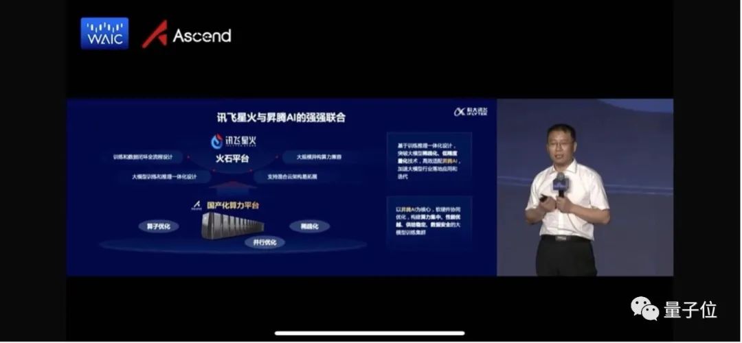 雙方合作之下也實現了訓練和數據閉環的全流程的設計,以及大模型的訓練和推理的一體化設計等等相關創新,有效的支撐了科大訊飛的訊飛星火一步一個腳印的持續的進步。