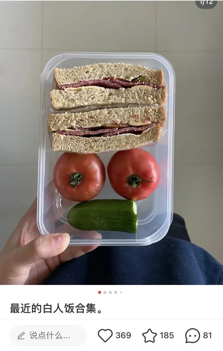 很多生活在新西蘭的華人也開始改變食譜——生芹菜蘸沙拉醬、簡單的三明治、幾個水果——所有這些都有一個名詞:#bairenfan(White People Meals 白人飯)。