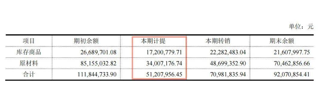 不僅如此,報告期內,公司庫存商品和原材料過期金額為415.69萬和7577.50萬元,過期存貨全部按照賬面成本全額計提跌價。