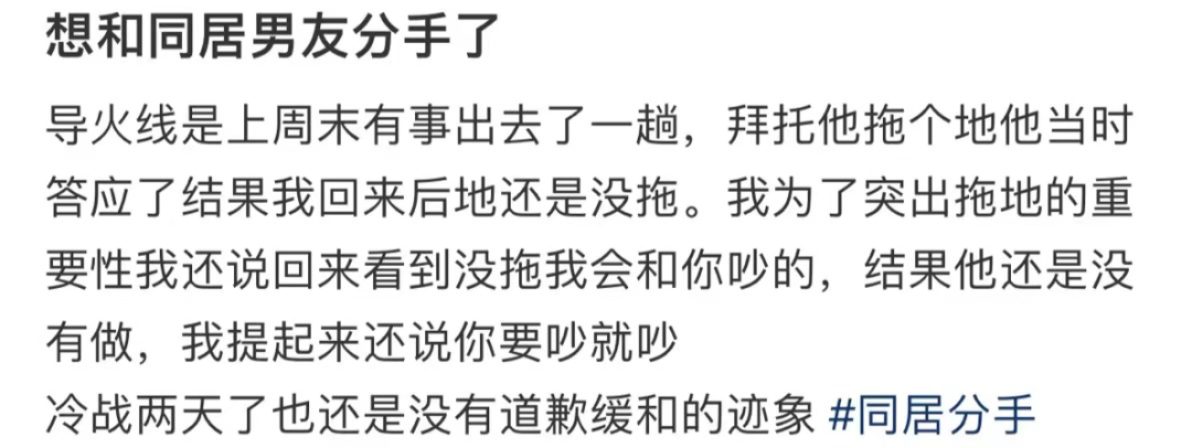 有同事説很有共鳴,她每次都因為老公不願意做家務生氣,兩個人始終無法在這個事情上達成共識;也有同事回憶起,和伴侶剛同居的時候,一度因為家務問題陷入關係危機……