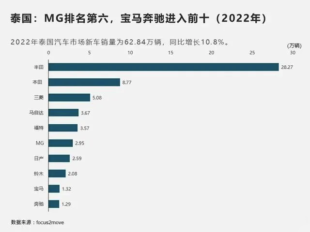 根據Focus2Move的數據,2022年泰國銷售約62.84萬輛新車。