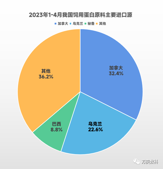 對比2022年、2023年我國飼用蛋白原料(以豆粕、菜粕、魚粉為主)的進口源分佈,基本無較大變化,表明我國對於該類原料的國際供需格局暫時穩固。