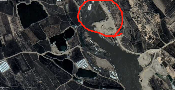 昨天,已經有人從衞星地圖上發現,黃德義的“浮橋”原址旁邊,佈置着佈置彩鋼房和工程機械還有疑似車斗,甚至還有篩砂子的篩場。説明這條河周圍,一直有人在挖沙。