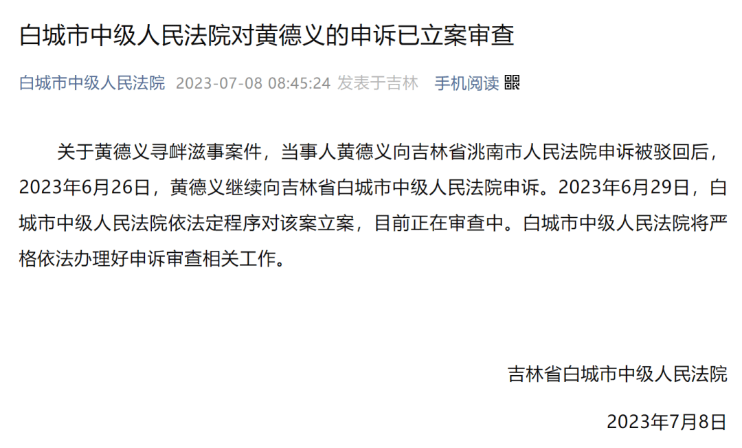 面對洶湧的輿論,吉林白城官方找了羊城晚報,發佈了一篇《吉林白城村民私塔浮橋被判刑引爭議,修橋人與官方説法出入較大》的文章。按照官方的解釋,黃德義一家是屢教不改,三次被處罰,三次重修浮橋。第一次是2005年到2014年,私自建浮橋,攔截過往車輛收費。到2014年時,黃德義又出資,私自建設了固定橋。