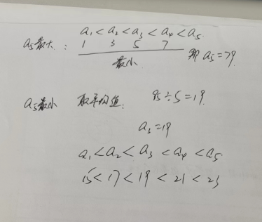 前面理解最大值沒有任何問題,正常小朋友都可以理解。但是後來理解最小值,為什麼要先用95÷5,這一步,很多小朋友可能就理解不了。關鍵就是背後數學思維,什麼情況下a5最小?就是5個數差值最小嘛。