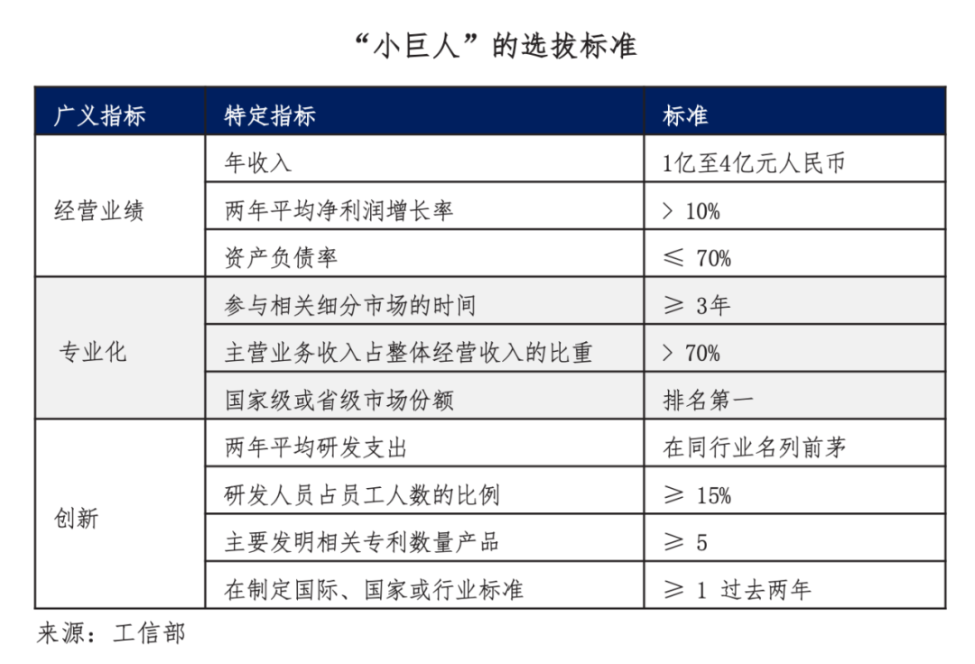 根據《通知》中概述的標準,“小巨人”必須具備: