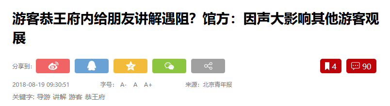 相關報道鏈接:《遊客恭王府內給朋友講解遇阻?館方:因聲大影響其他遊客觀展》