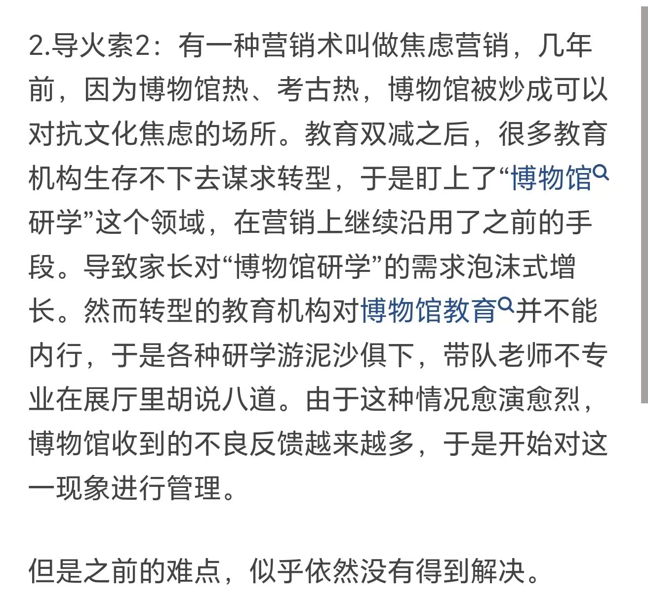 有網友認為,之前在參觀博物館時,是會有部分社會人士在講解歷史知識時夾帶私活,影響到部分博物館的形象。再加上也有一些教育機構盯上了“博物館研學”這個領域,不顧自身旗下的教育人員是否具備相關的專業知識,讓這些人在帶隊參觀時胡説八道,致使博物館收到了很多的負面反饋,這才促使這條政策的誕生。