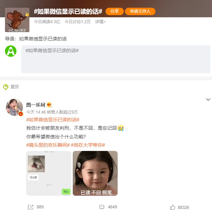 7月12日,魔鬼話題“如果微信顯示已讀的話”躺在微博熱搜上,引起用户熱議。