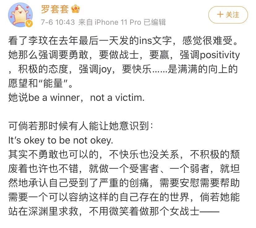 現在看她的微博評論區,已被諸如“你也要好好的”“每天都要開開心心的”“back不back真的無所謂”這些暖心留言佔滿。