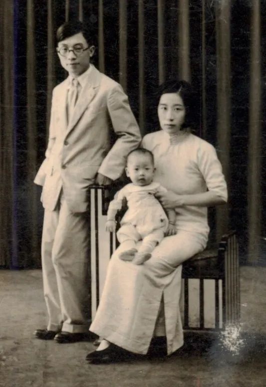 1937年7月,李薰(左)與夫人席璽玉、大女兒李發榮合影。