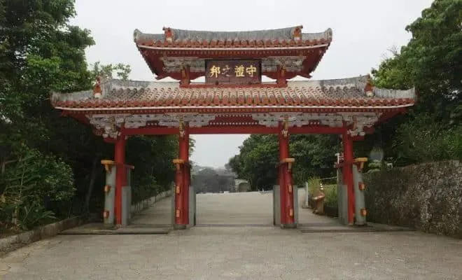 守禮門是首裏城的城門,在二戰中和首裏城一起被燒燬了。