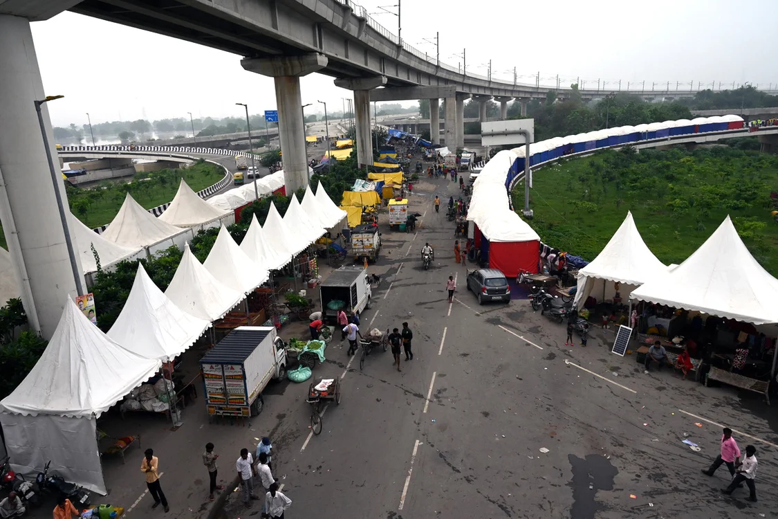 7月13日,印度新德里,被疏散的居民住在路邊的臨時帳篷裏。