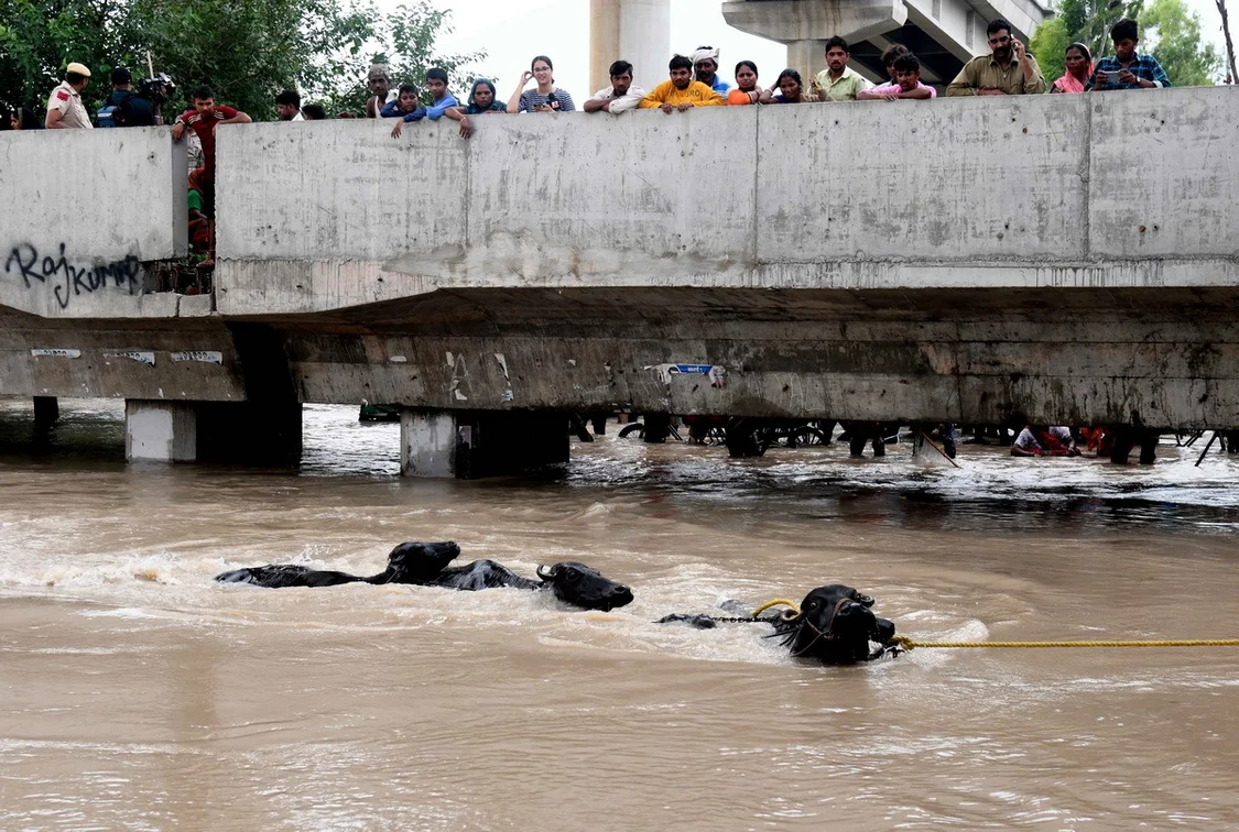 亞穆納河流經印度首都新德里,是恆河最長的支流。持續暴雨導致亞穆納河水位猛漲,德里多地處於洪水警戒狀態。印度中央水資源委員會公佈的數據顯示,截至13日18時,新德里亞穆納河水位上升至208.66米,打破了1978年創下的207.49米紀錄。
