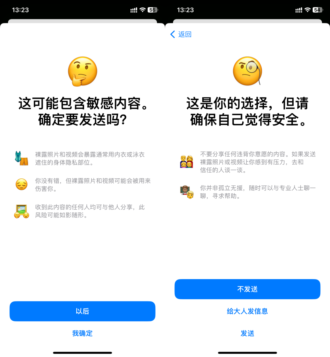 現在,如果你用隔空投送或信息發送果照的話,都會收到蘋果善意的提醒。