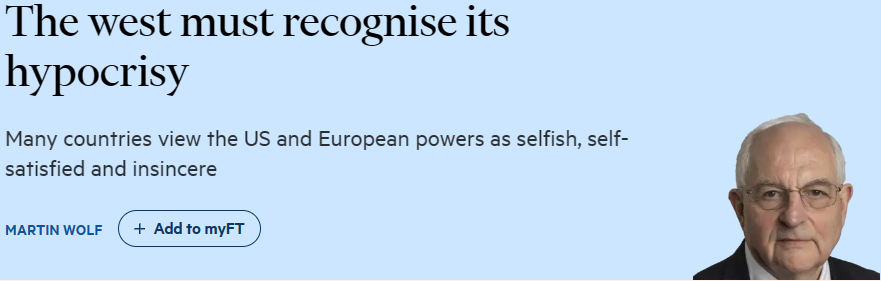 (作者是英國《金融時報》首席經濟評論員。本文原題“The west must recognise its hypocrisy”,由《金融時報》網站發佈於2023年7月12日。除截圖外的圖片均為原文所有,圖表的文字説明由譯者添加。譯者聽橋,無法保證理解準確,尤其是圖説部分。)