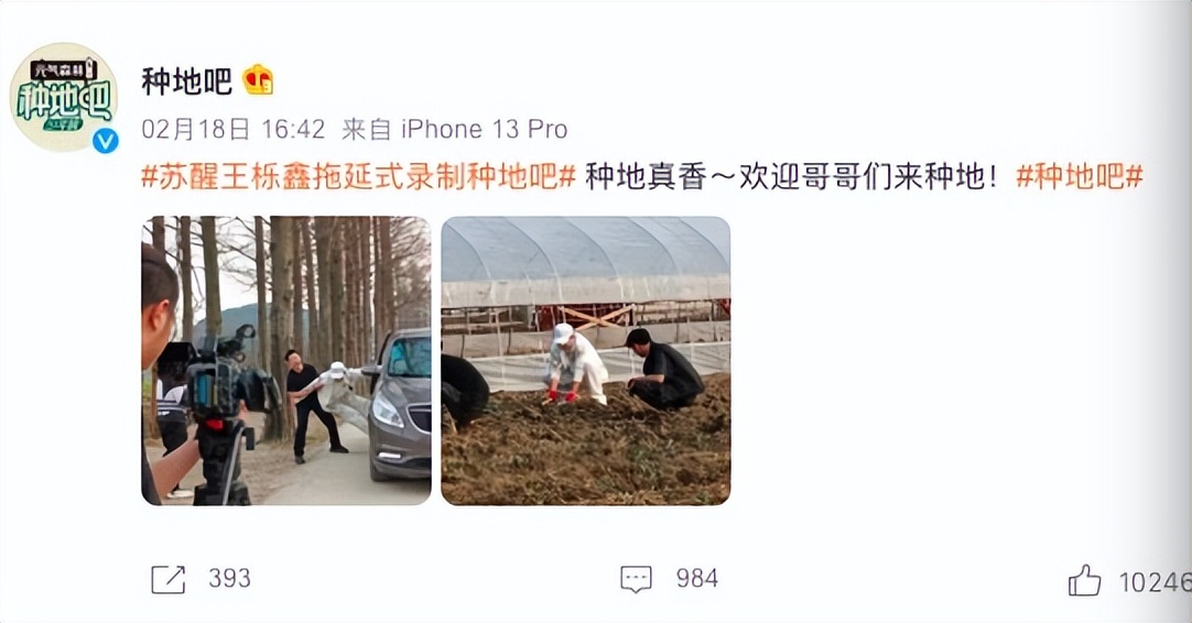 其二,錄製期宣推或成新常態。《種地吧》錄製期間,官微曾在網絡上發佈甦醒全身都在拒絕錄製的照片而引發討論,將熱極一時的再就業男團熱度與節目本身的熱度嫁接。畢竟當時自有一批忠實粉絲滿網找“老北北”的“碎活兒”。當然如今《種地吧》已然自成IP,而這張圖後來也被網友神P圖成為上班族的真實寫照。