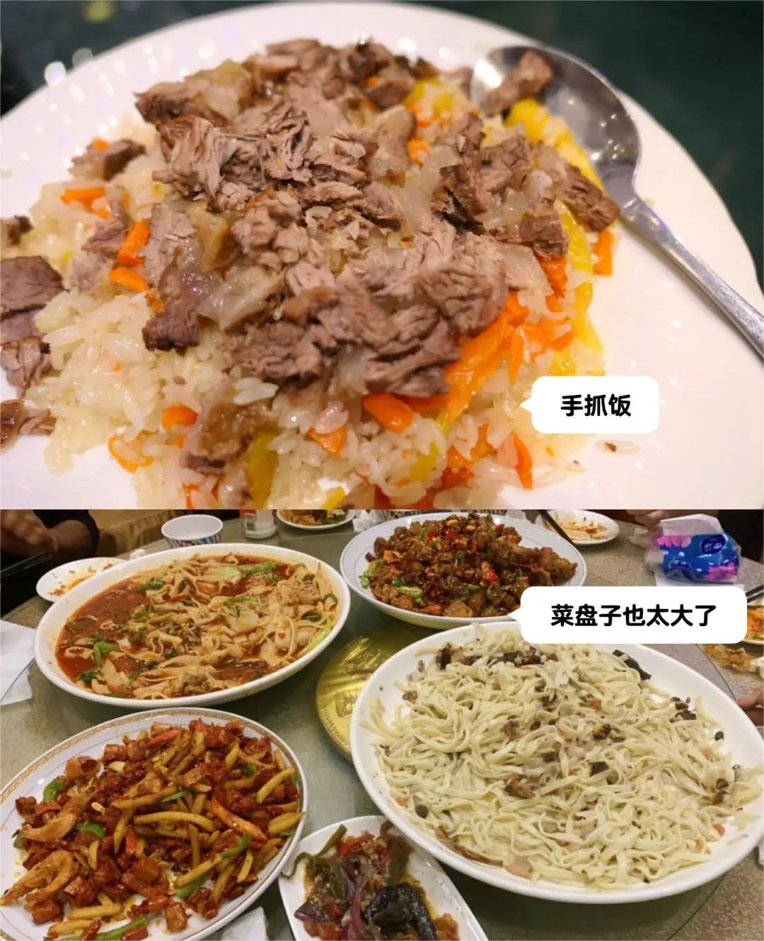 各種主食被盛到又大又深的碗裏,實實在在地將拌麪、炒麪、抓飯的鮮香可口端到客人面前;