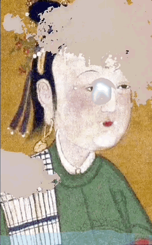 仿明代肖像畫中貼珠翠面花的侍女,仿出了莊重慈祥之感。