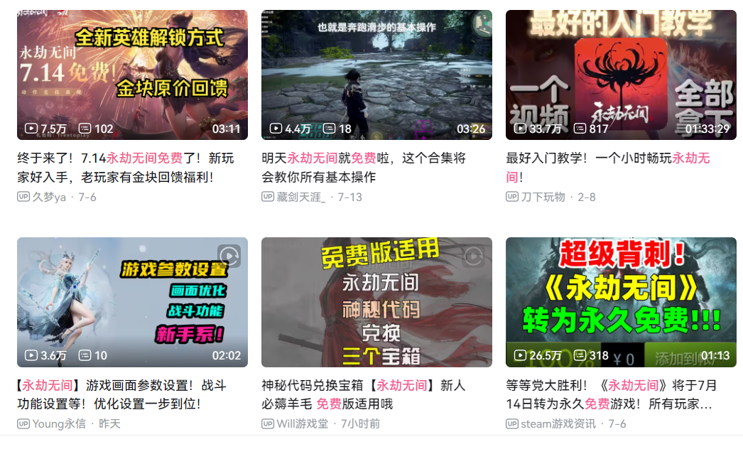 在遊戲宣佈免費後,無論是視頻平台還是玩家社區,相關的二創和討論內容都增加了不少,其中也有很多新手向的教學。