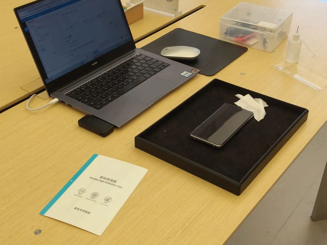 後來我通過華為商城 App 領了一張貼膜券然後找了一家離公司比較近的服務點,總算是給手機貼上了膜,沒有提前預約,到場就能貼也還算方便。